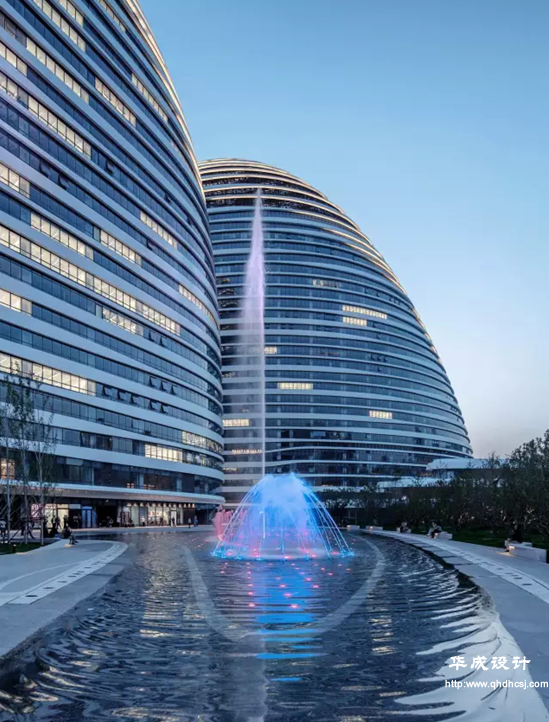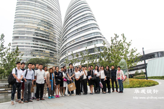 考察團隨后抵達了由著名建筑師扎哈·哈迪德(Zaha Hadid)擔綱總設計師的“首都印象建筑”——望京SOHO?疾熘,學員對望京SOHO項目的設計手法及細節(jié)、如何解決多專業(yè)交叉問題、如何運用流線型設計手法、如何將景觀細節(jié)與建筑相融合等諸多設計難點進行了交流。
