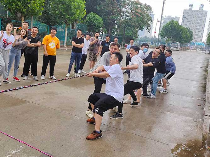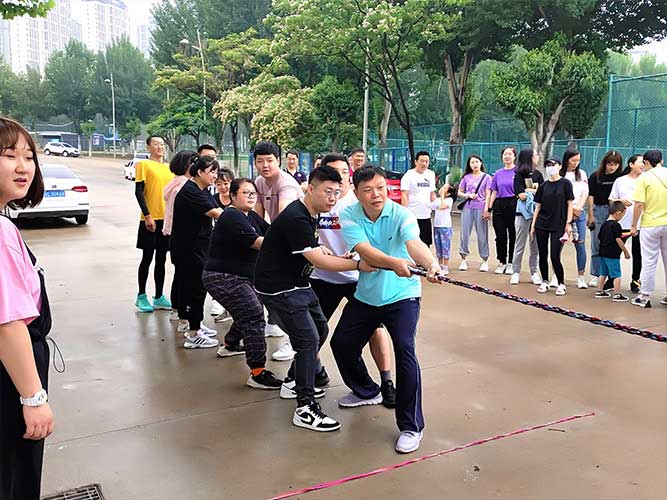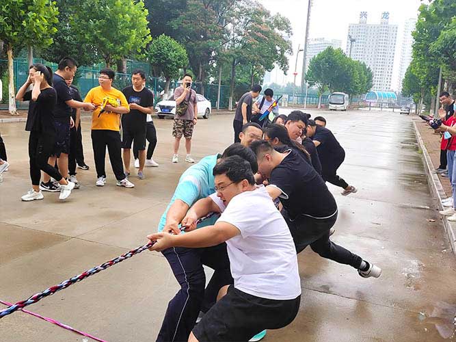哨聲響起,比賽一觸即發(fā)!大家團結一致努力拼搏著(zhù)!有的緊握麻繩,咬牙使勁;有的扎穩腳步,不可撼動(dòng);有的身體向下傾斜,鉚勁拉繩……大家的勁往一處兒使,心往一處兒聚。全神貫注的眼神、奮力拉扯的身影,無(wú)不彰顯了員工們的意志。