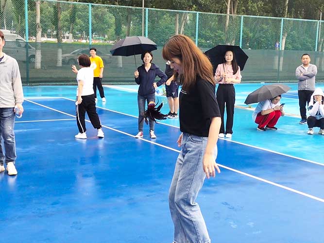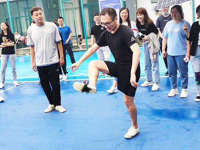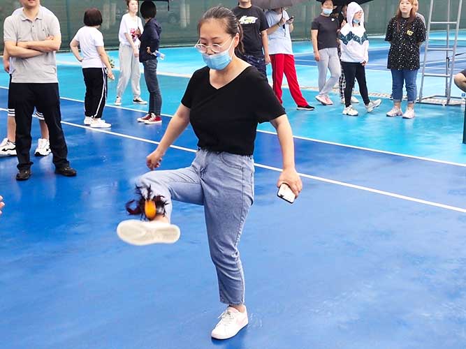 這是為女生們準備的個(gè)人賽,同理,男生也可以挑戰。參加者每人一次機會(huì ),踢毽子在不間斷、不落地的前提下,個(gè)數*多者勝利。并且冠*可以直接去選一個(gè)獎品拿走。